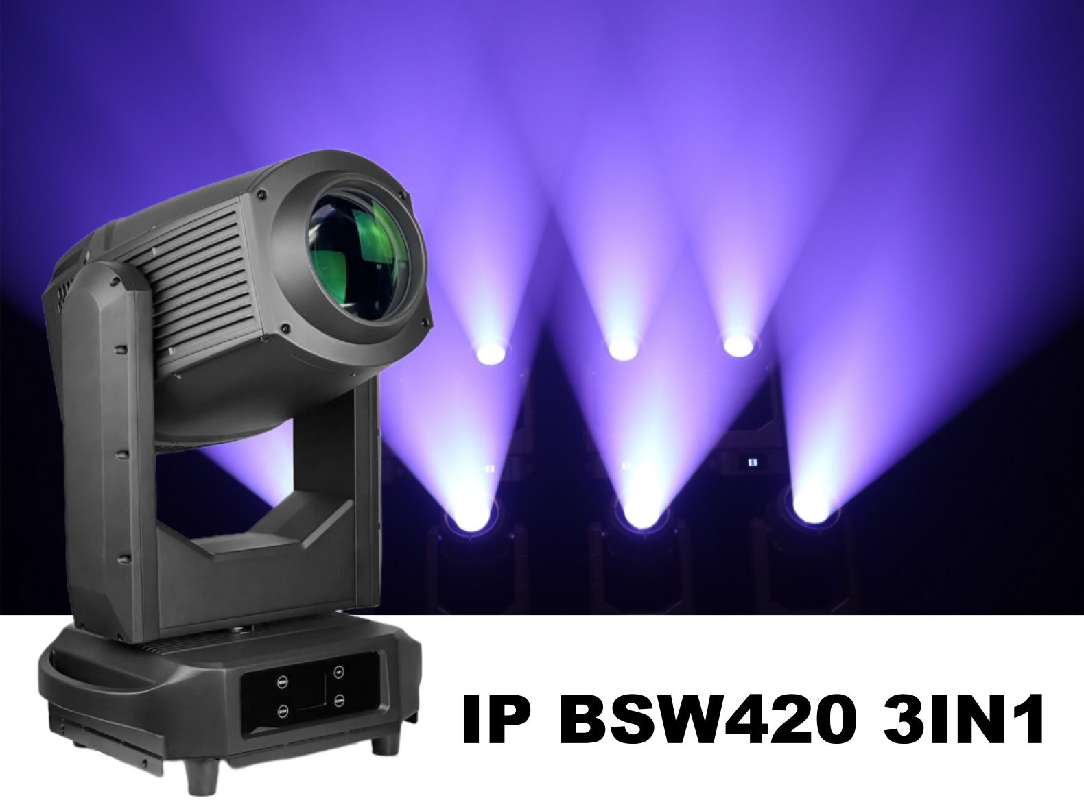 This series of stage BSW moving head lights includes two models: IP BSW380 3IN1 and IP BSW420 3IN1, which are