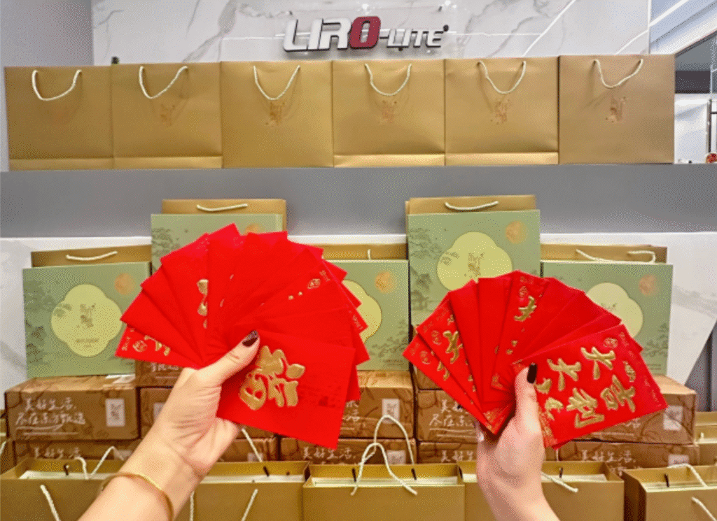 Regardez ! L'entreprise a distribué des gâteaux de lune, des fruits et des enveloppes rouges aux employés, et tout le monde était ravi.