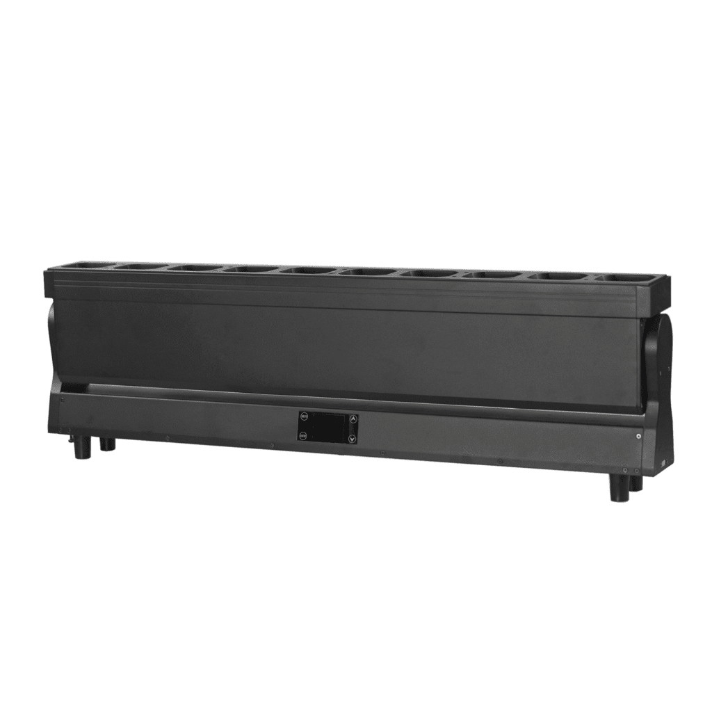 The Super Dotline 10×60W RGBW LED Pixel Zoom Wash Moving Head Beam Bar Light is a professional stage lighting device that combines high brightness, multi-functions, and intelligence. Equipped with 10 60W four-color RGBW LED main light sources, it is equipped with 96×3W cool white (CW) and 96×3W warm white (WW) light sources, as well as 96×0.5W RGB three-color LED auxiliary light sources. It achieves rich lighting effects such as switching between cool and warm tones and full-color dynamic strobe. It shares the same channel with ACME equipment and can be seamlessly spliced into a large lighting effect matrix, making it an all-round solution for high-end stage lighting systems.