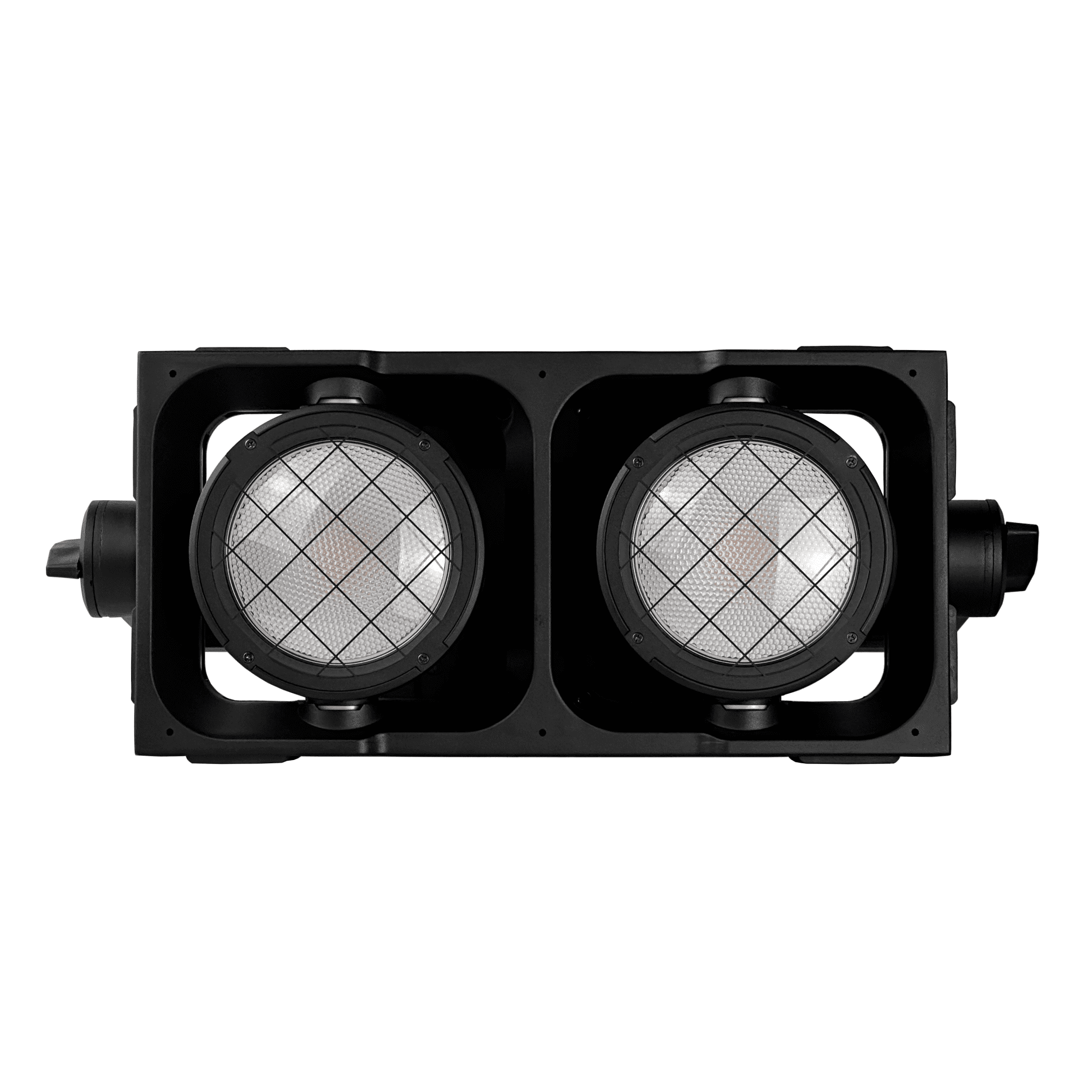 The IP66 COB Audience Light 2X300W Led Blinder Light has become a leader in lighting equipment with its comprehensive performance, excellent parameters, convenient design of sharing the same channel with ROXX, and splicable moving head function, bringing an excellent lighting experience to various scenes.