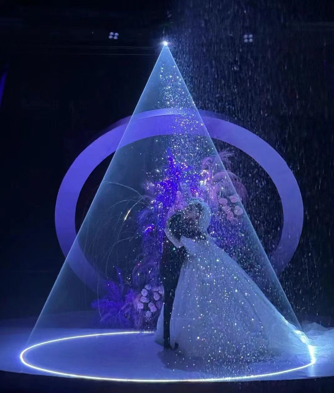 Features a unique laser snow effect that simulates falling snowflakes, adding a romantic and ethereal touch to the stage.